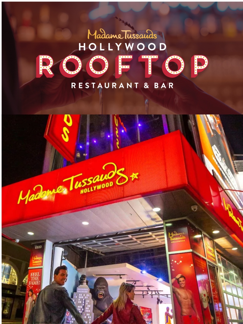 The Hollywood Rooftop: an outdoor oasis where guests can effortlessly enjoy the charms of old Hollywood glamor while seamlessly experiencing the modern tastes of LA and dine with their favorite stars in this new rooftop restaurant and bar by Madame Tussauds.