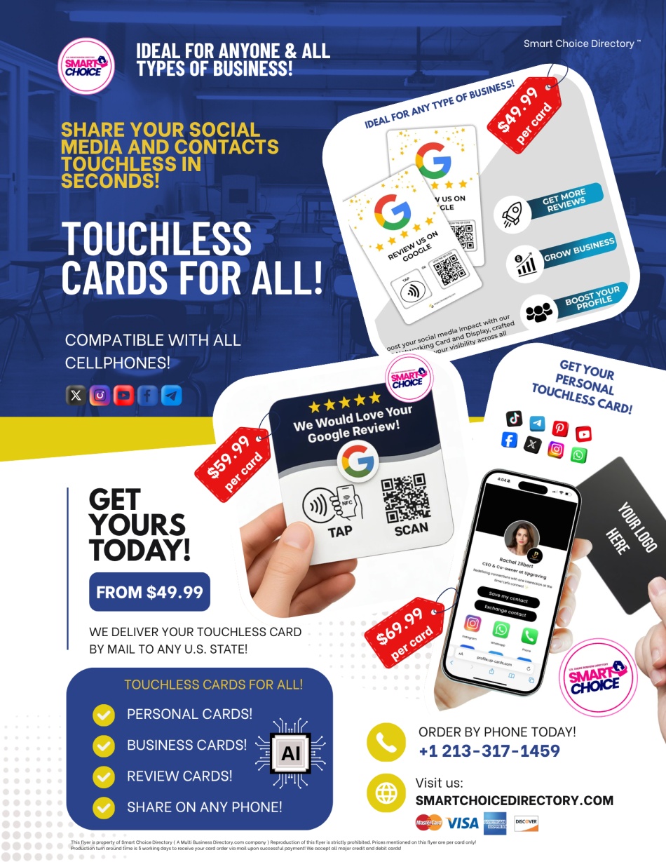 Whether you're an individual or a business owner, our Touchless Card lets you share all your contact or business information in just seconds — no apps, no hassle!